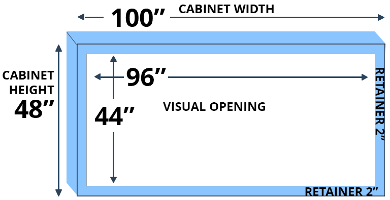 If you need a replacement sign cabinet cover, send us the visual opening as well as the measurements of your retainer around the face of the cabinet.